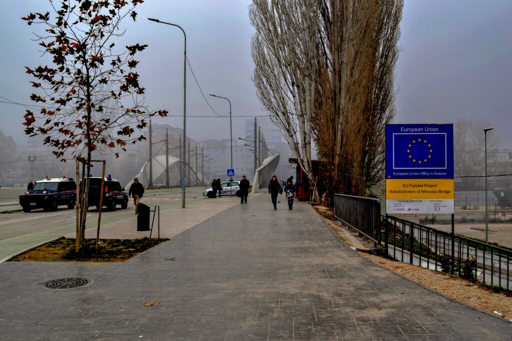 Comme un reliquat de la guerre de 1999 entre le Kosovo et la Serbie et des conflits qui lui avaient succédé, des soldats de la KFOR* et de l’ONU et des policiers kosovars patrouillaient le pont en permanence.
