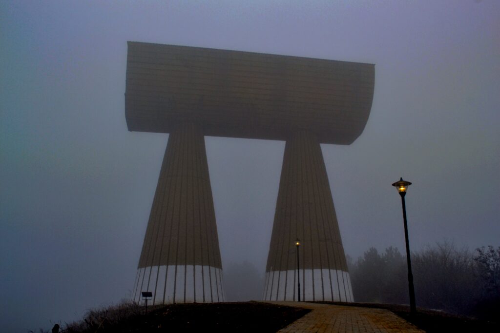 En 1973, l’artiste Bogdan Bogdanović conçevait ce gigantesque wagon minier de béton. Les deux pilliers, ensemble, représentaient l’unité des mineur albanais et serbes durant la guerre.