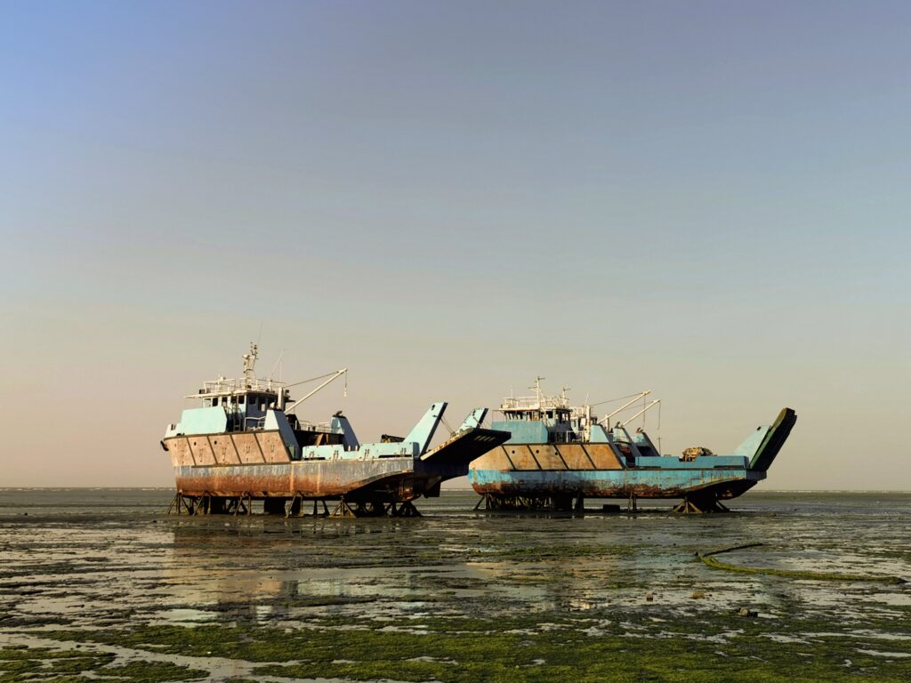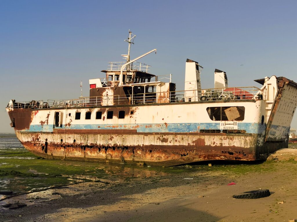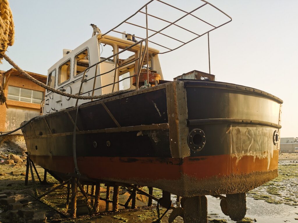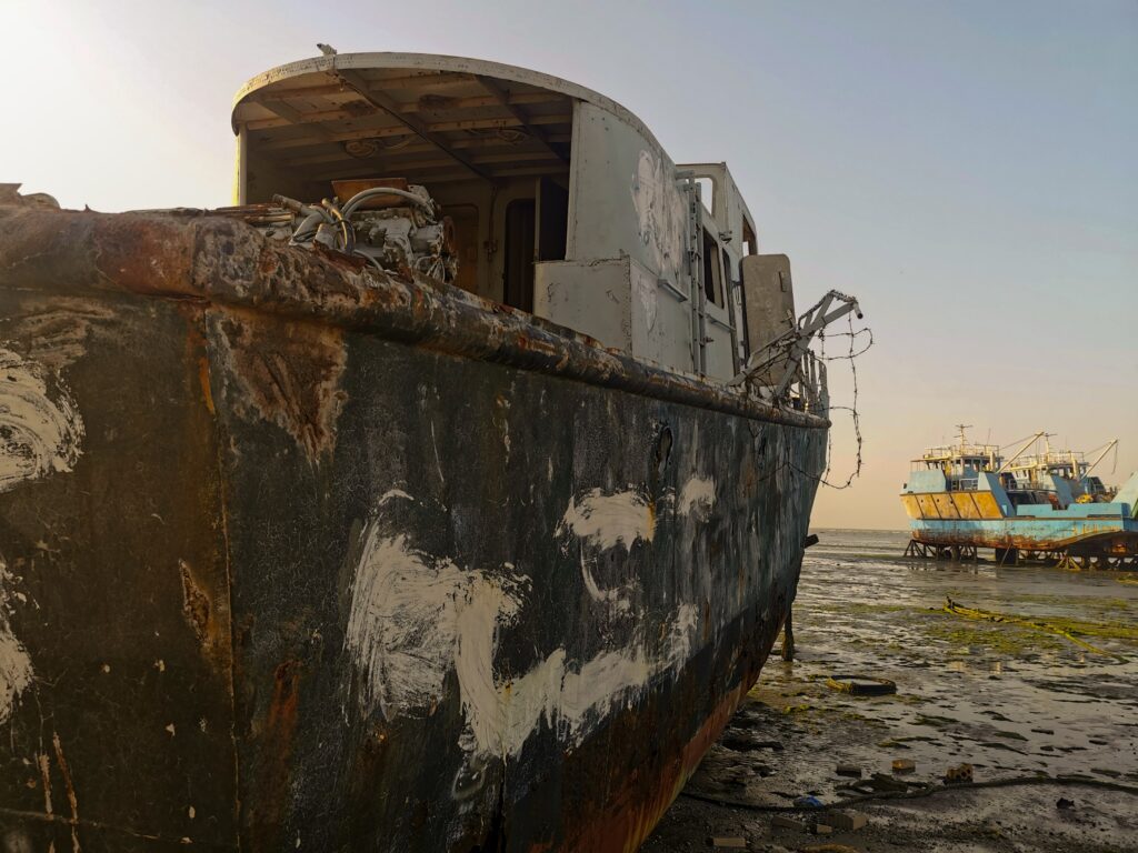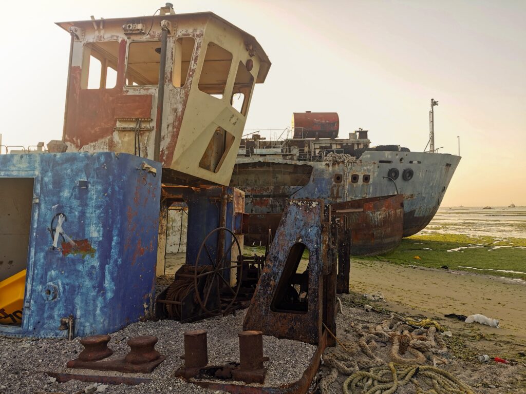 Au cimetière de bateaux d’Al-artiya, les vaisseaux abandonnés correspondaient aux usages contemporains : des navires de forage pétrolier, des ferries, des bateaux individuels. A sa manière, l’endroit portait toujours l’atmosphère des départs lointains et de l’aventure.