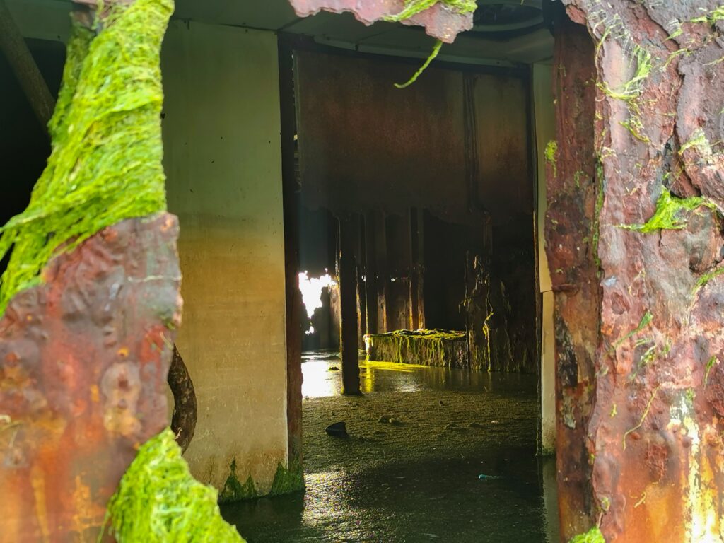 L’une des épaves disposait d’une échelle, et, en montant, j’étais surpris de voir que le pont extérieur avant était aménagé. J’apprendrai que depuis des dizaines d’années, les bateaux hébergeaient des travailleurs immigrés, employés pour veiller à ce que les navires ne soient pas entraînés au large.
