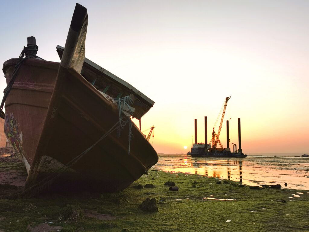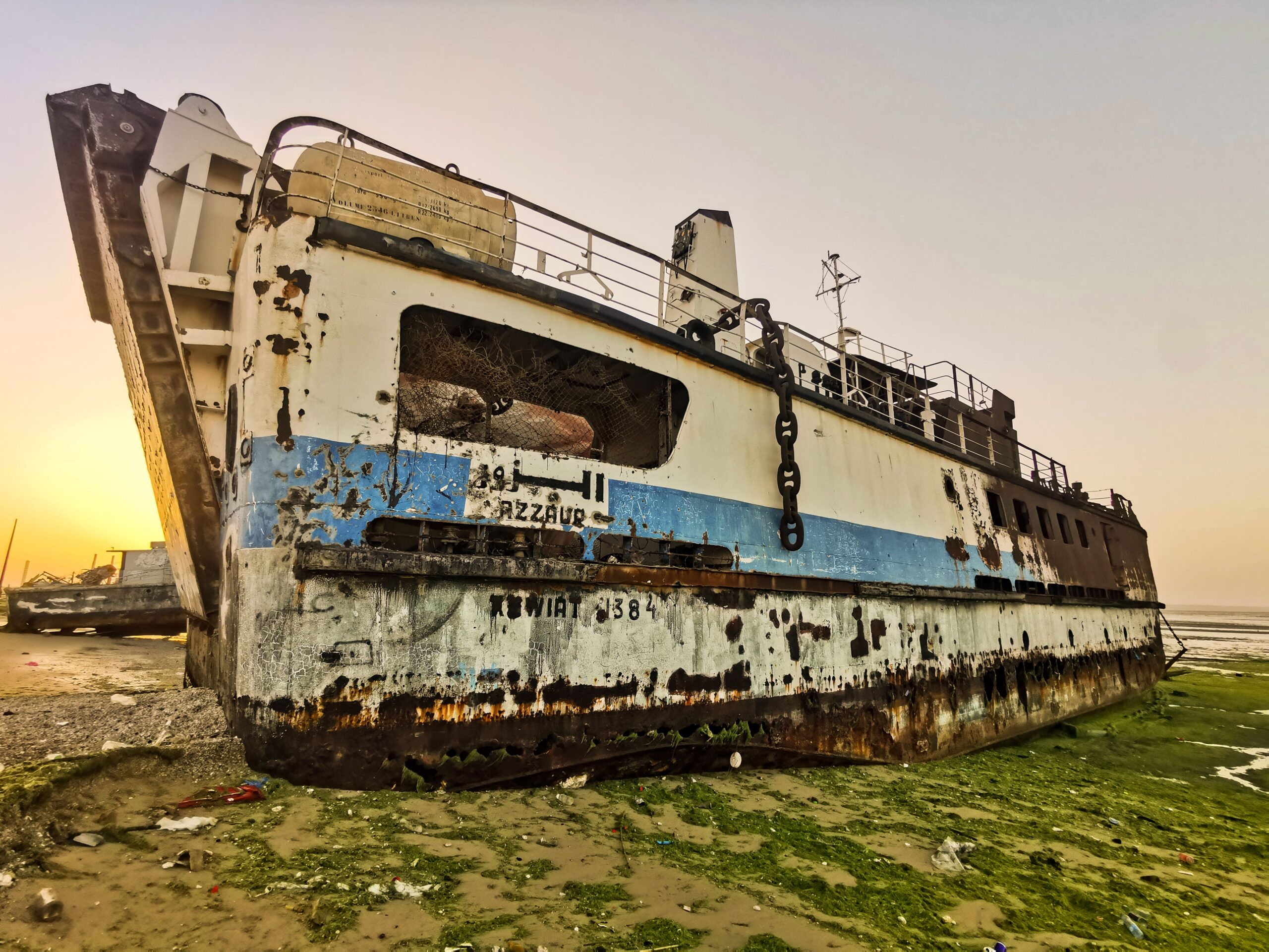 A Koweït, ce lundi de printemps, la marée basse correspondait à l’heure du crépuscule. J’allais pouvoir photographier les bateaux échoués tandis que les derniers rayons d’un soleil particulièrement chaud les envelopperaient.