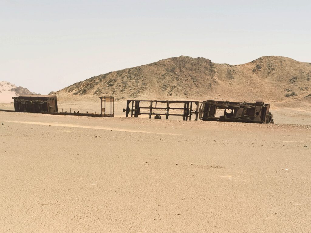 J’arrêtais ma voiture au milieu de l’océan de sable. La carcasse du train ottoman gisait là, depuis la Première guerre mondiale, à dix mètres de mon véhicule. Le désert la rendait plus anonyme encore. Je sortais de ma voiture et faisais quelques pas autour des wagons. Le soleil brûlait et le silence était total. Les pieds dans le sable, j’imaginais la surprise des Ottomans, l’attaque du train et la guérilla. J’étais face à l’Histoire.